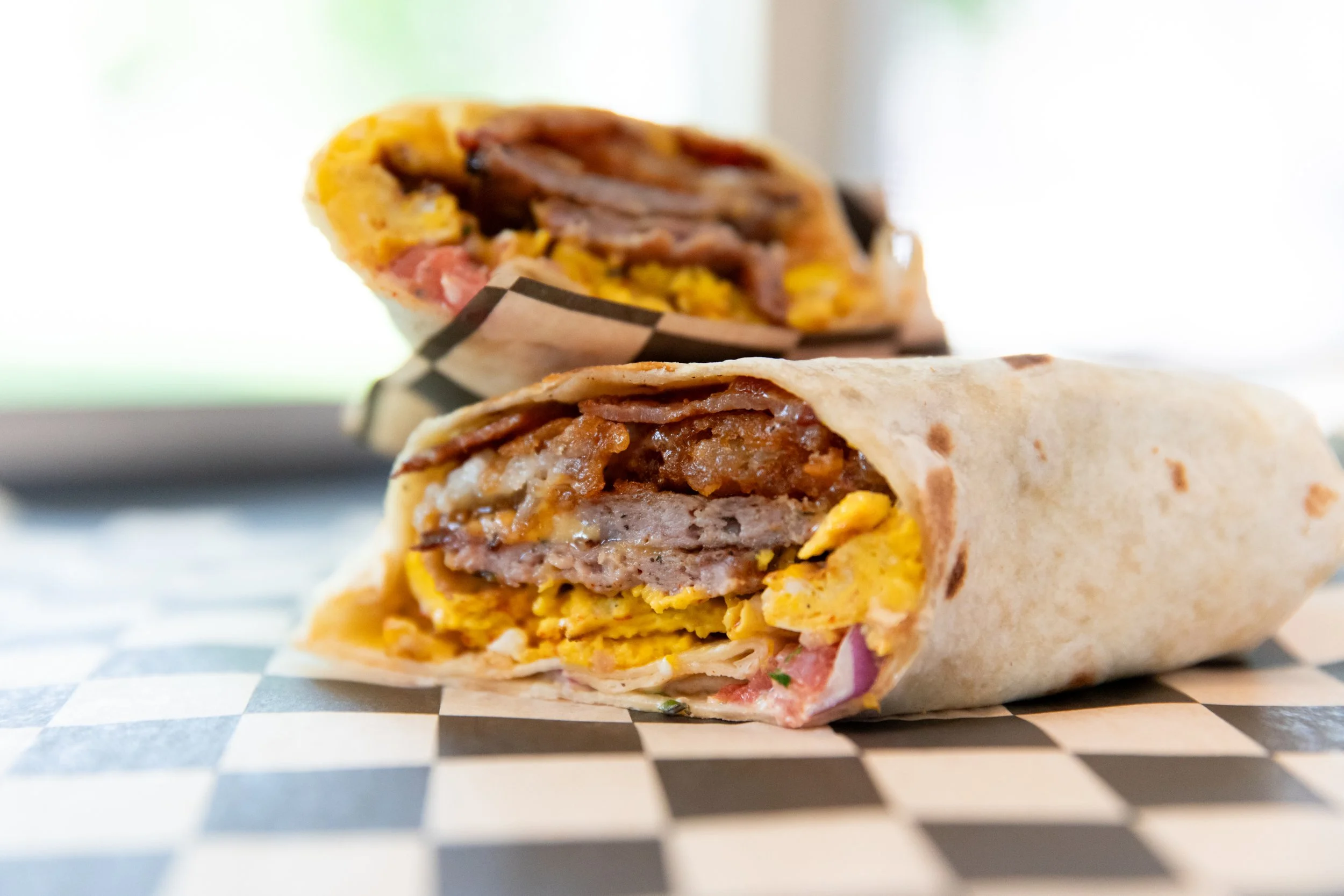 SCRAMBLED EGGS, SAUSAGE, APPLEWOOD BACON, CHEDDAR, PICO, GARLIC AIOLI